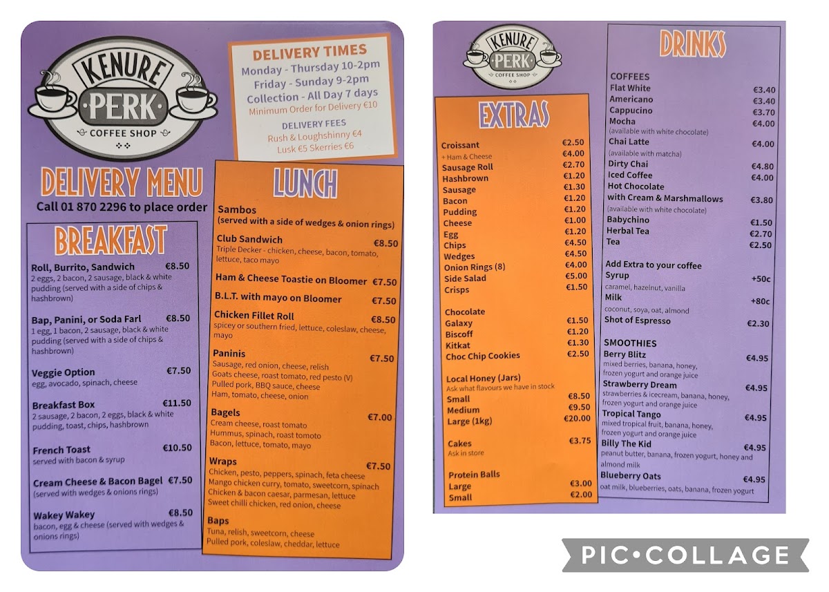 In summary, if you're ever in Rush, don’t miss the opportunity to indulge in the delightful offerings at Kenure Perk. Whether you're grabbing a quick breakfast on the go, enjoying a relaxing lunch with loved ones, or simply enjoying a cup of their excellent decaf coffee, this charming café promises a memorable experience. Join us in celebrating local flavors and warm hospitality at Kenure Perk!
